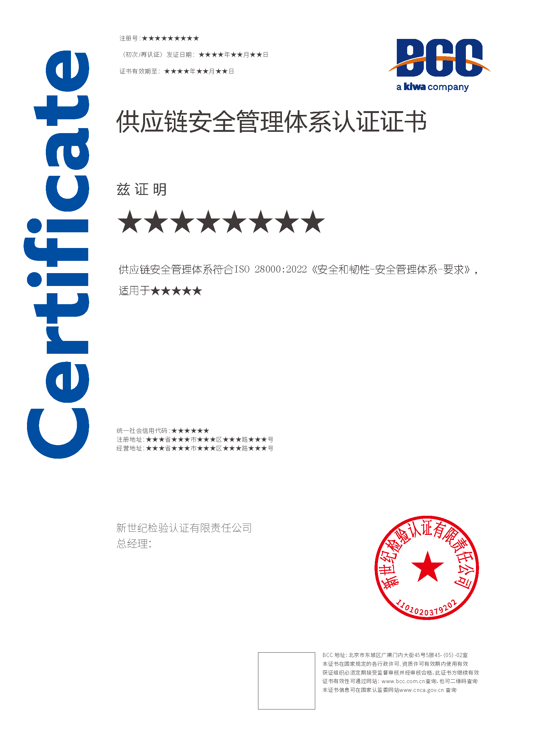 本頁涉及的認證服務(wù)中均有對應(yīng)的《認證實施規(guī)則》,BCC擁有其最終解釋權(quán)。任何組織及個人未經(jīng)BCC許可,不得以任何形式全部或部分使用(法律要求除外)認證相關(guān)信息。如需獲取相關(guān)實施規(guī)則請用以下方式聯(lián)系獲?。弘娫挘?10-58579316 郵箱:fwjs@kiwa.cn