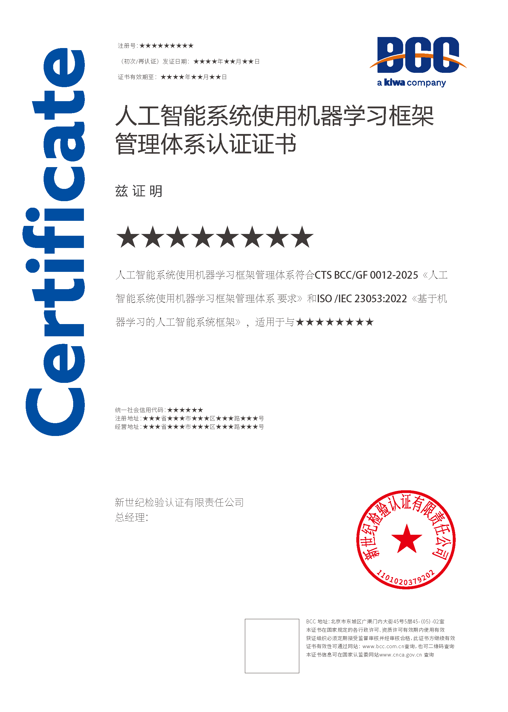 本頁涉及的認(rèn)證服務(wù)中均有對(duì)應(yīng)的《認(rèn)證實(shí)施規(guī)則》,BCC擁有其最終解釋權(quán)。任何組織及個(gè)人未經(jīng)BCC許可,不得以任何形式全部或部分使用(法律要求除外)認(rèn)證相關(guān)信息。如需獲取相關(guān)實(shí)施規(guī)則請(qǐng)用以下方式聯(lián)系獲?。弘娫挘?10-58579316 郵箱:fwjs@kiwa.cn