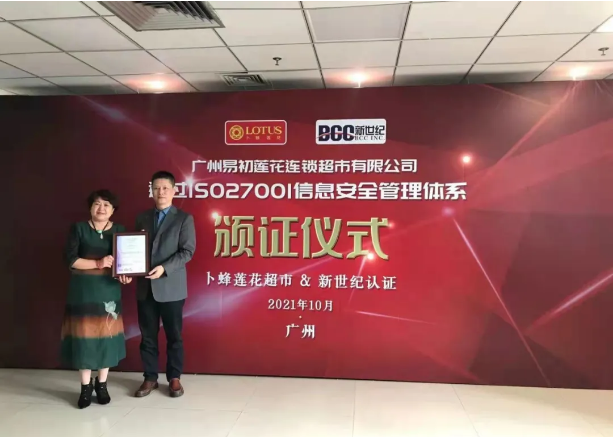 廣州易初蓮花通過(guò)ISO27001認(rèn)證頒證儀式隆重舉行!
